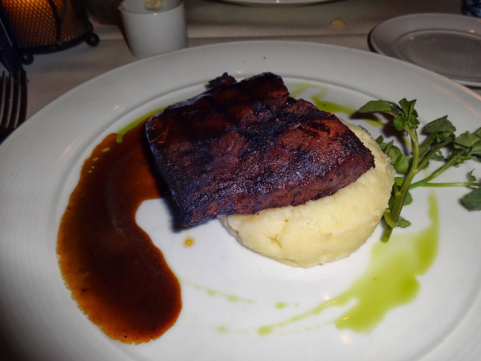 When Katie's plate was sat in front of her, I was kind of blown away. This is more like something you would see at a four-star restaurant, than in a small place in a strip mall. Even more shocking was the price of the Entree ($8.99). Both Katie and I ordered an entree, which means you get to choose your protein, a sauce, or a rub, and then you get two side items. The chicken gets rave reviews here, so that's what Katie went for, with roasted garlic and herb sauce, grilled asparagus, and a garlic noodle. Her first comment when she bit into this chicken was to remark how moist the bird was. The garlic was not too overpowering, but it hung around the background. She was a little worried that the noodles would make this dish greasy, but that was not the case here. The asparagus was fresh, and grilled nicely. When I asked Katie for any negatives about this plate, she could not come up with any. She liked the lightness of everything, and would probably get this again.