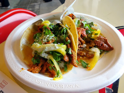 Lastly, Mike brought us out the Corn on the Cob ($3.25). I have to admit, I'm not much of a fan of corn on the cob, but I found this to be very tasty. This elote-style corn was brushed with a light touch of mayonnaise, cotija cheese, and chili powder. The corn was nice and juicy, and I was not sure that the mayo and cotija cheese were going to interact well, but it turned out to be a very nice side item to close out our meal at The Taco Stand.