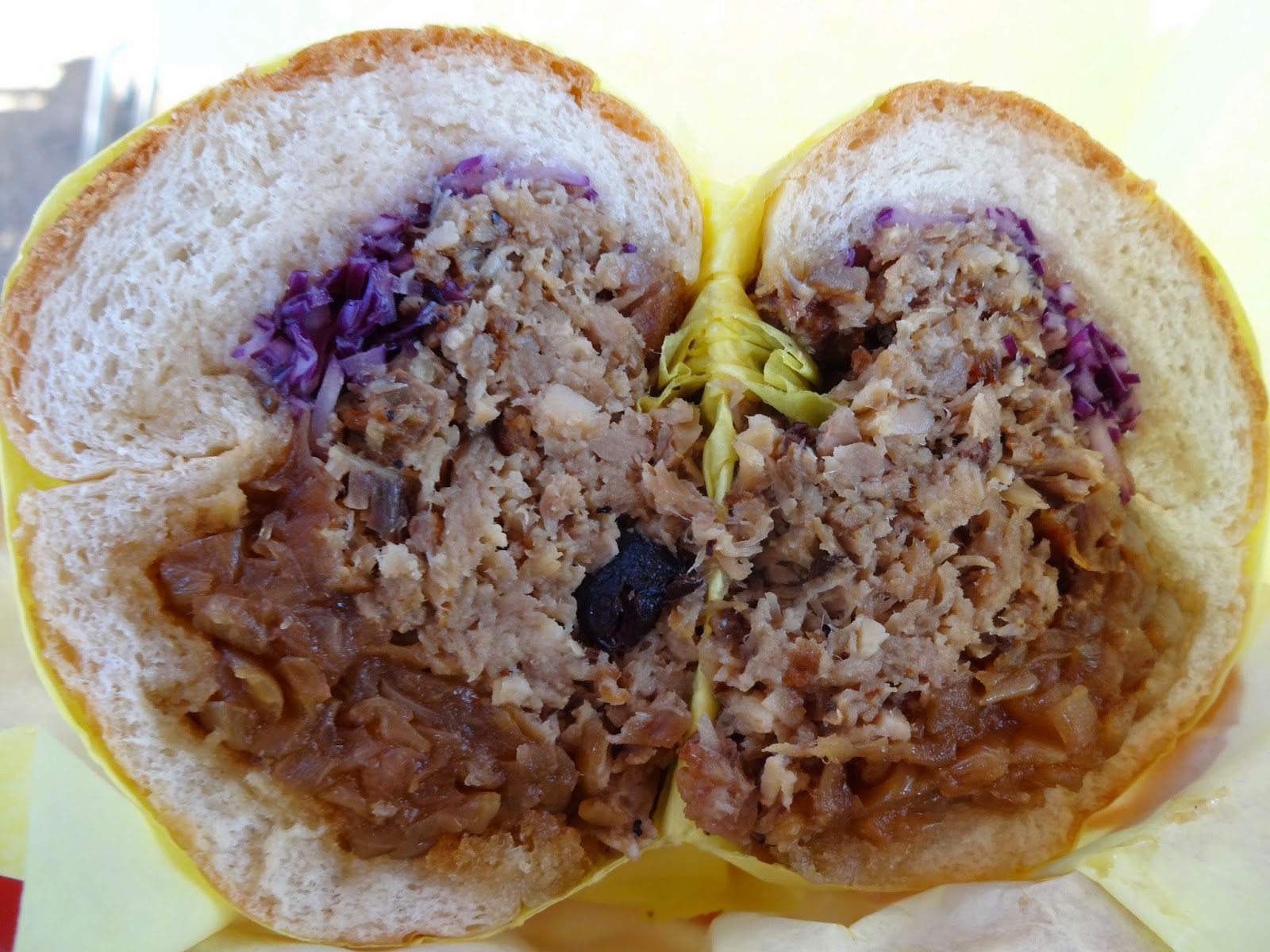 After the greatness of both the pork and the burger, I was thinking our hot streak was going to come to an end, but the hits just kept on rolling with this Oinkster Pastrami ($10.50). The care that they use to make their pastrami is evident as soon as you taste it. They cure their pastrami for two weeks, it's rubbed with a bunch of spices, (pepper for sure), and then smoked over applewood. This sandwich comes with the same red cabbage slaw and caramelized onions, but Gruyere cheese is added to this one. Some might think that the pastrami here is a little too seasoned, but I liked the big flavor of this pastrami. Again the cabbage and onions balanced out the meat a bit and the cheese added a nice creaminess. Another winner in my book.