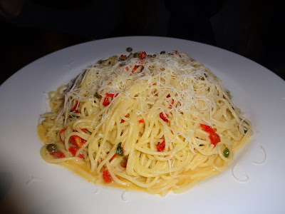 Both Sabrina and Katie ordered the same pasta dish, which helps me write this review up quicker. They both got the Baciata Dal Sol ($10 or $14.50 with chicken). This pasta dish featured spaghettini, olive oil, basil, garlic, capers, sundried tomato, and chopped tomato. Again, this was a large serving of pasta that both girls found hard to finish. They both liked this but were not wowed by it. Katie liked the freshness of the ingredients but did not like the shaved chicken that was added to hers. She would have been happier with bigger hunks of chicken on this.